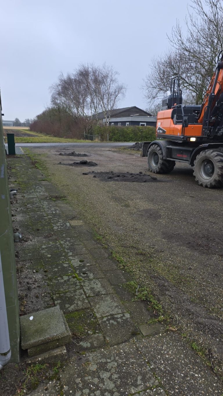 Op de parkeerplaats voor het verenigingsgebouw zaten enkele vervelende gaten in. Deze zijn weer netjes opgevuld door de vader van...