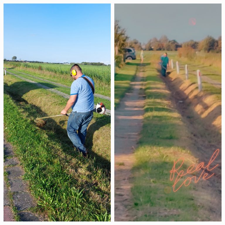 Ook op zondag wordt er hard gewerkt om de hoofdgreppel, aan het pad, weer gereed te maken voor de herfst- en winterperiode.