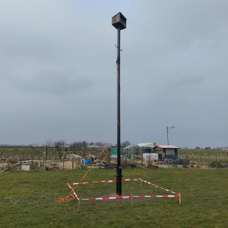 Er staat inmiddels een mooie kast op een enorme paal.